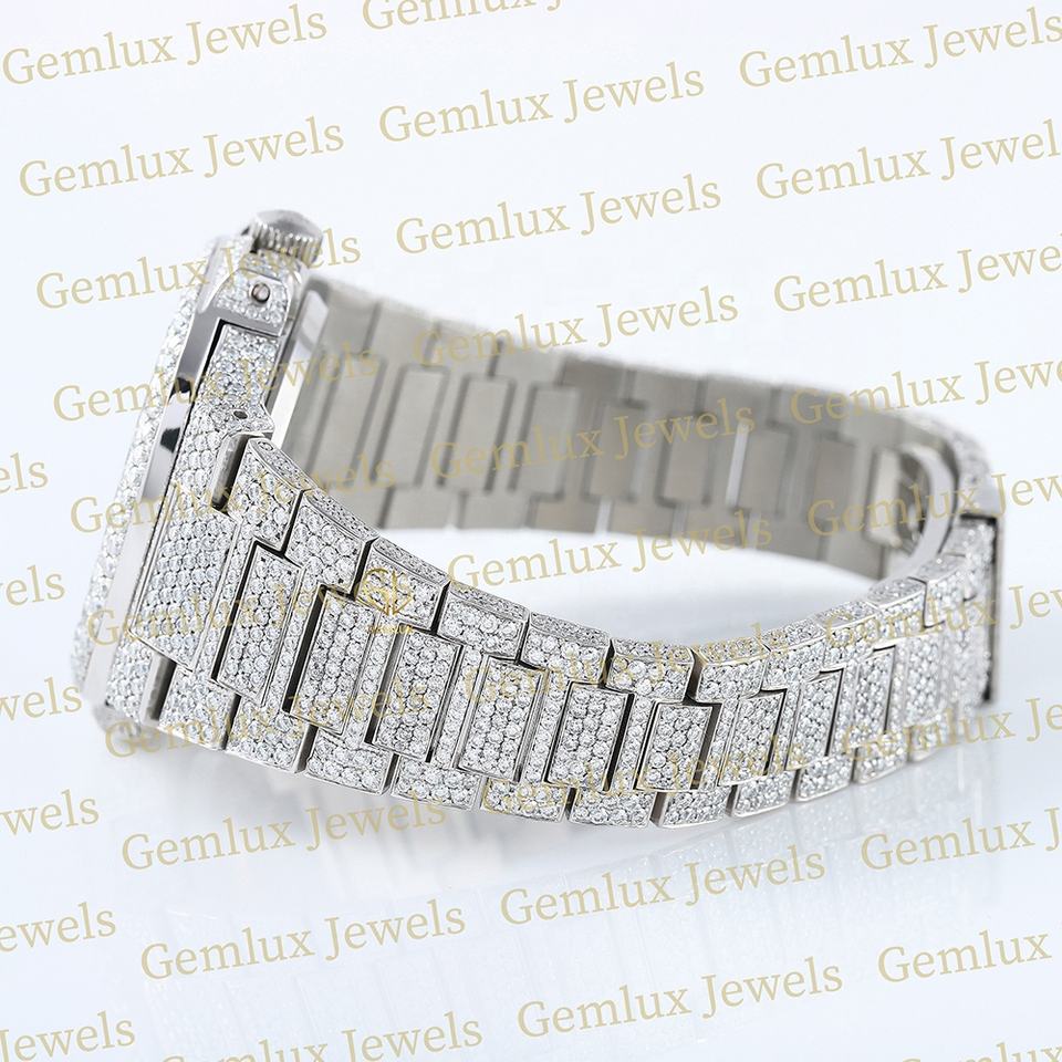 นาฬิกาฮิปฮอปอัตโนมัติสำหรับผู้ชายเครื่องทดสอบเพชรผ่านเพชรคุณภาพสูง D VVS เพชรเม็ดเพชรออกน้ำแข็งทั้งหมด