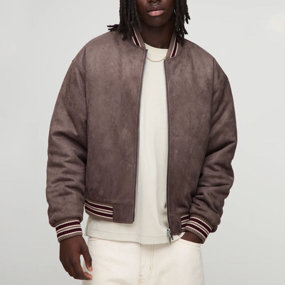 เสื้อแจ็คเก็ตวาร์ซิตี้ทรงบอมเบอร์ แขนหนัง ปักลายคุณภาพสูง สไตล์นักศึกษาชาย แบบสั่งทำพิเศษ ไซส์ใหญ่