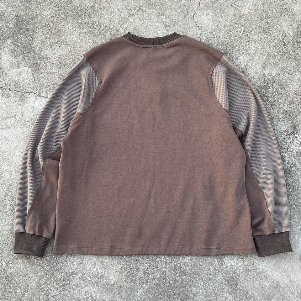 เสื้อยืดคอกลมปักลายคุณภาพสูง เสื้อวาฟเฟิลเนื้อหนาแบบสั่งทำ เสื้อยืดแขนยาวสไตล์ดิสเทรสสำหรับผู้ชาย