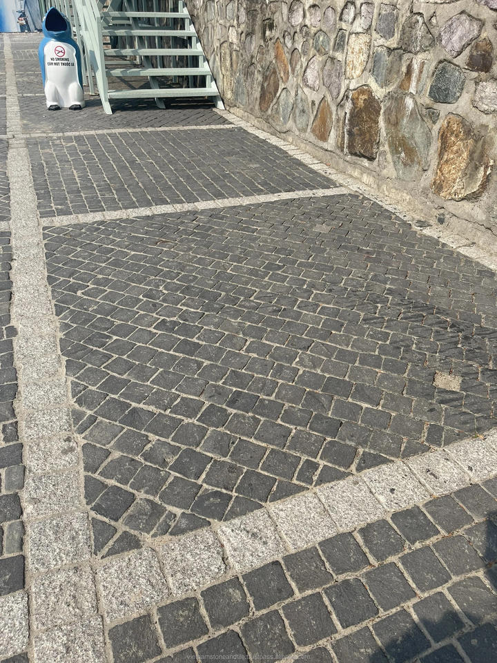 ปูหินบะซอลต์สีดำปูทางสำหรับถนนรถวิ่งหินไฟกลางแจ้งหินแกรนิตพัดลมลูกบาศก์พร้อมตาข่ายปูถนนกระเบื้อง
