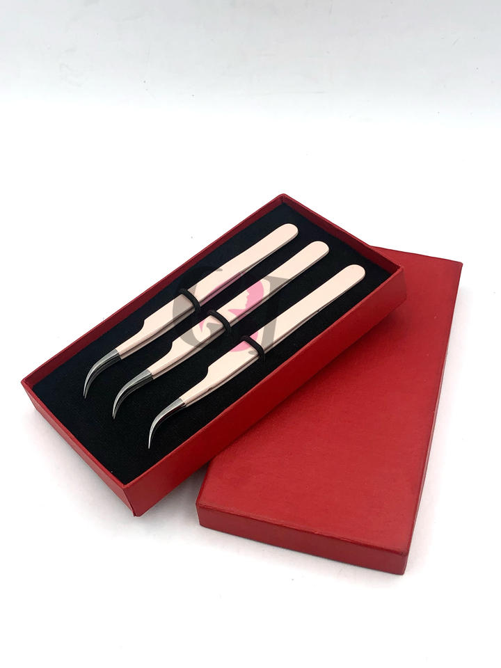 แหนบต่อขนตาสีพีชแบบโค้งสีเงินอุปกรณ์เสริมความงามปรับแต่งโลโก้ได้