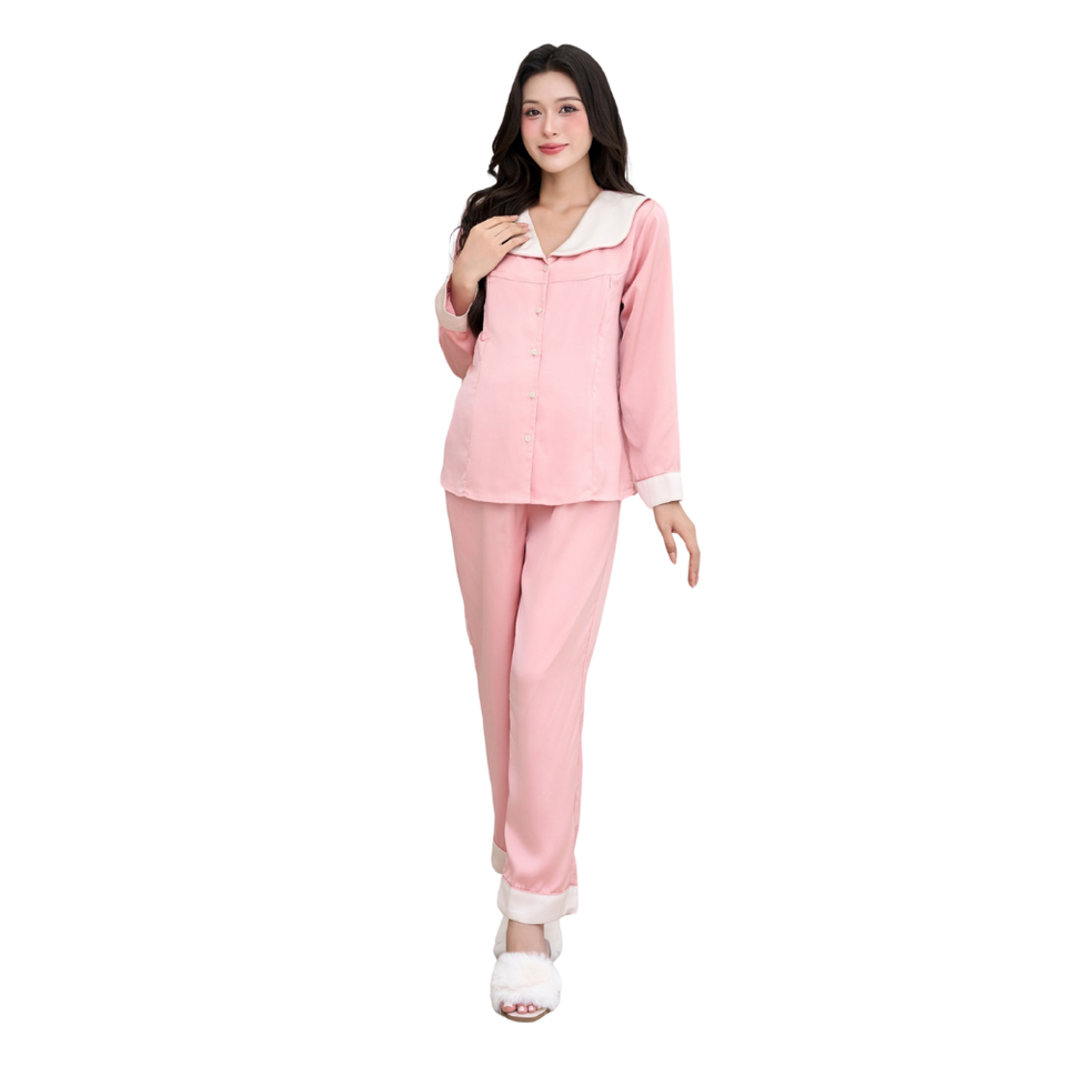 ชุดเสื้อผ้าสำหรับคนท้องและหลังคลอด รุ่น B762 ผ้าไหมมุกคุณภาพสูง กางเกงเอวยางยืดพร้อมกระดุม