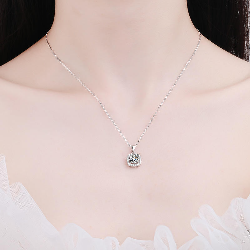 สร้อยคอเพชรโมอิส S925ทรงสี่เหลี่ยมสีเงินสเตอร์ลิงสำหรับผู้หญิงจี้ห้อยคอสายโซ่