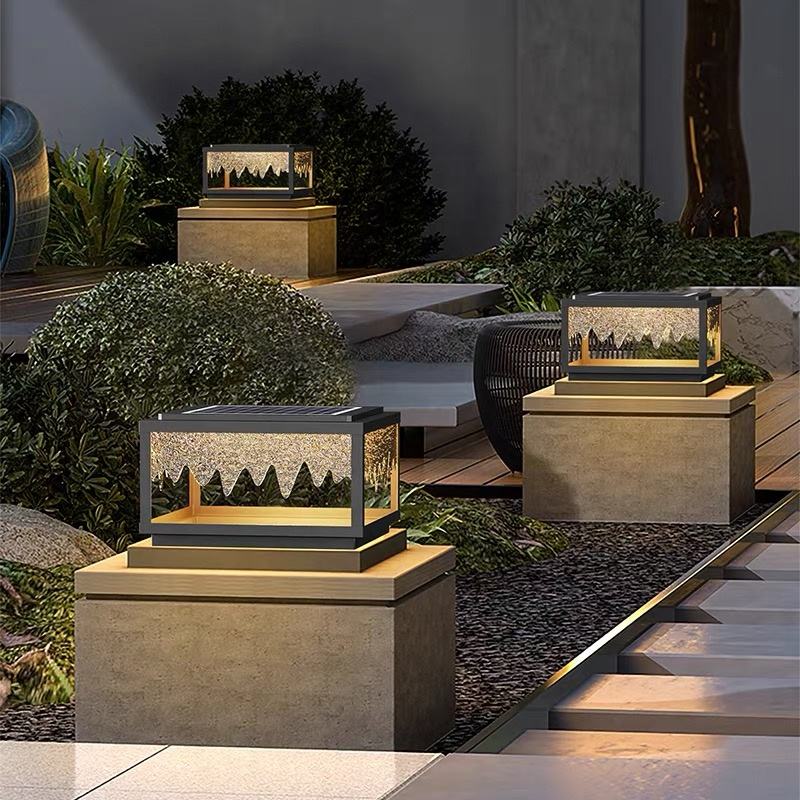 โคมไฟสนามหญ้าเสาไฟ LED สำหรับสวนดีไซน์โดดเด่นของโคมไฟเสาพลังงานแสงอาทิตย์