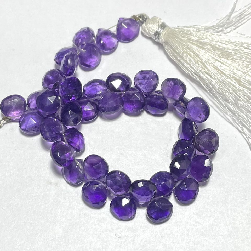 ลูกปัด briolette รูปหัวใจพลอยสีชมพูสำหรับเครื่องประดับสีม่วง