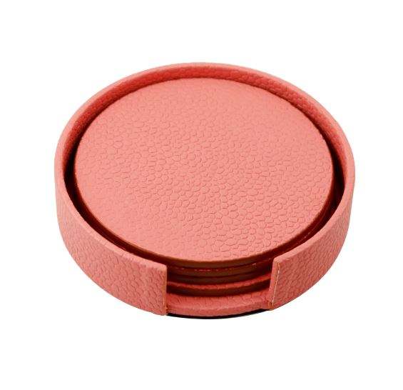 ที่รองแก้วหนังสีชมพูพร้อมชุดยึดของโต๊ะ5ชิ้นอุปกรณ์เสริมโต๊ะเครื่องหนัง