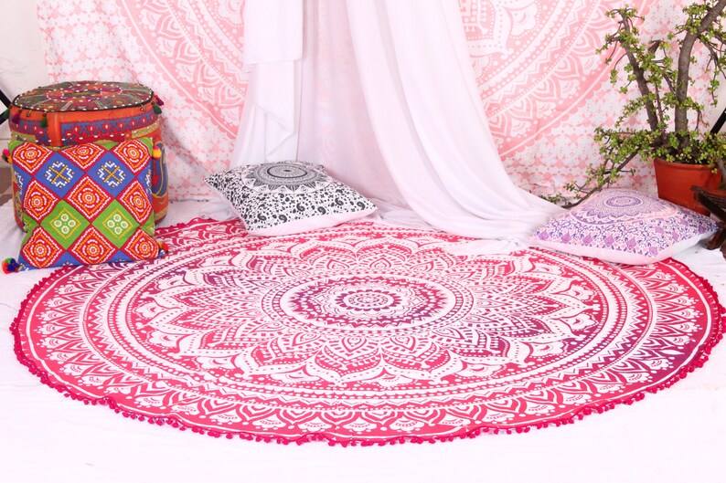 เสื่อโยคะชายหาดสำหรับปิกนิกพิมพ์ลายสีชมพูออมเบรของตกแต่งบ้าน