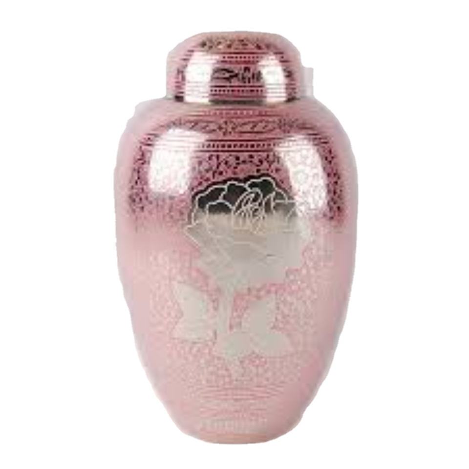 โกศบรรจุอัฐิทองเหลืองคุณภาพสูงสีชมพู สำหรับบรรจุอัฐิของผู้ใหญ่ แกะสลักลายดอกไม้ด้วยมือ พร้อมฝาปิดทรงโดมเกลียวแน่นหนา