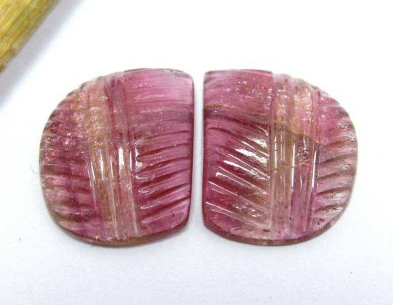พลอยทัวร์มาลีนสีชมพูคุณภาพสูง รูปทรงใบไม้แกะสลักธรรมชาติ แบบแฟนซี หลังแบน คู่ขนาด 17x14 มม. น้ำหนัก 8.60 กะรัต พลอยหลวมสำหรับทำเครื่องประดับ