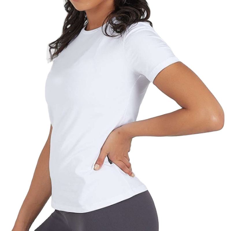 เสื้อยืดโยคะพิมพ์ลายอีลาสตินผ้าฝ้ายสีขาว,แบบเรียบง่ายคุณภาพสูง