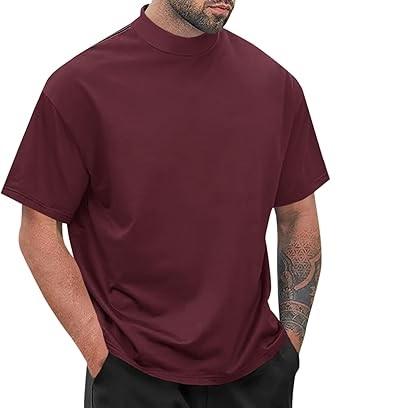 High Quality Plain Oversized Drop Shoulder Custom 100% Cotton Mock Neck T-shirts for Men Heavyweight Oversized Boxy t shirt