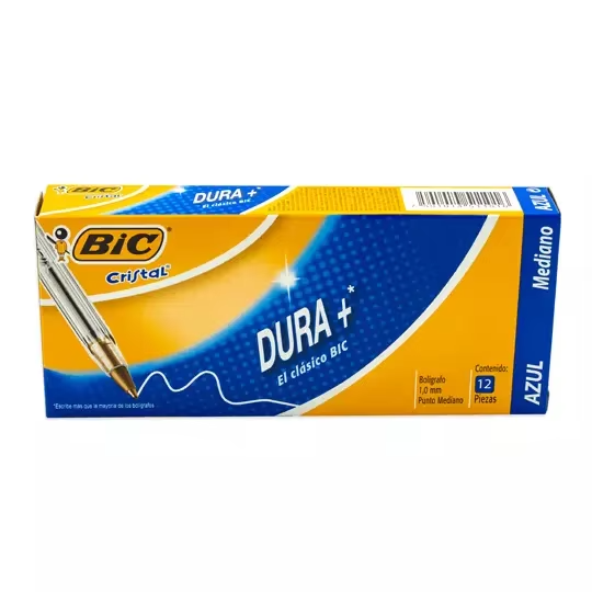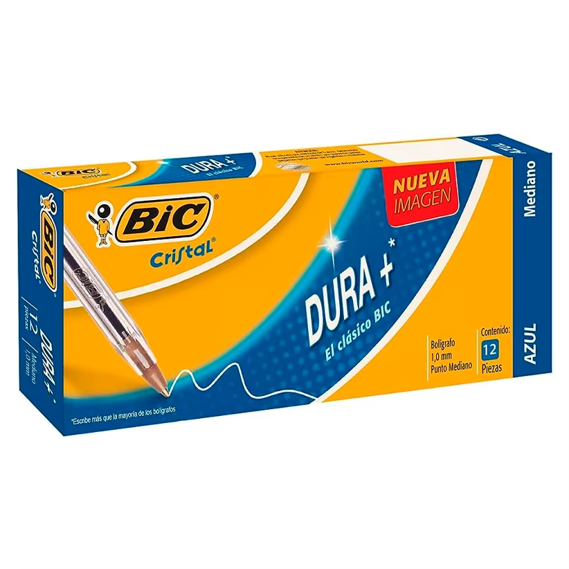 ปากกาลูกลื่นหกเหลี่ยมคุณภาพสูง Dura+ Crystal หมึกสีดำ 1 มม. สำหรับสำนักงานและโรงเรียน บรรจุกล่อง 12 ด้าม
