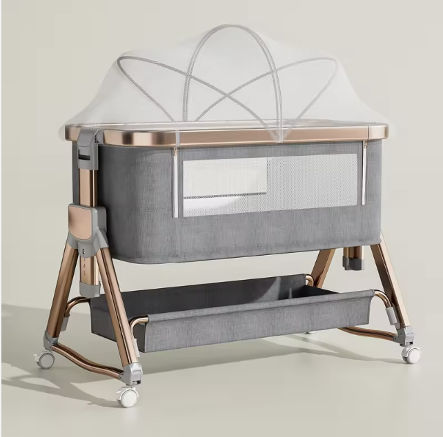 เตียงเด็กพับได้พลาสติกคุณภาพสูงแบบพกพา ปรับระดับความสูงได้ พร้อมมุ้งกันยุง ดีไซน์แบบดั้งเดิม สำหรับเด็กแรกเกิดและเด็กเล็ก