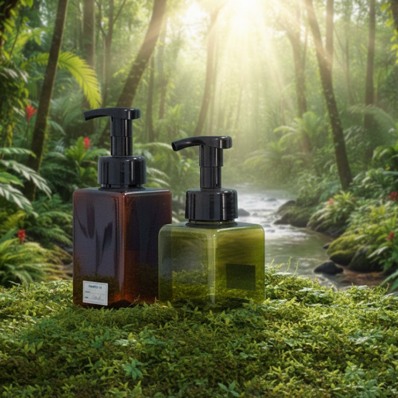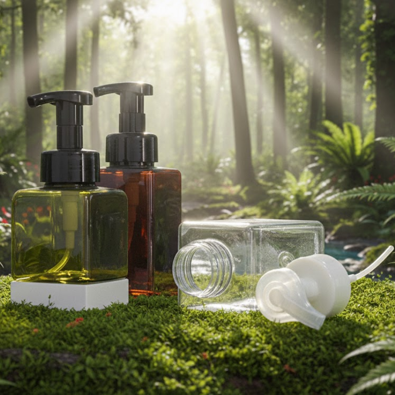ขวดบรรจุภัณฑ์เครื่องสำอางทรงสี่เหลี่ยมคุณภาพสูง ผลิตจากพลาสติก PET รีไซเคิลได้ พร้อมหัวปั๊ม 28/410 24/410 สำหรับโลชั่นและแชมพู