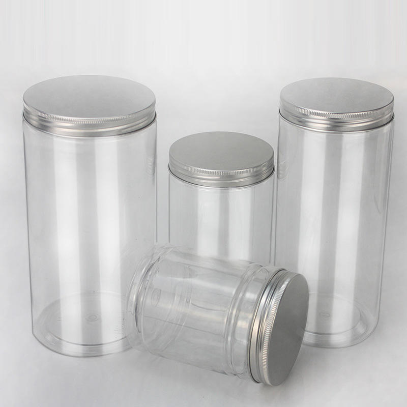 โหลพลาสติกเก็บของปิดฝาอลูมิเนียมแบบใสเหมาะสำหรับเก็บเครื่องเทศของขบเคี้ยวและอาหารแห้ง