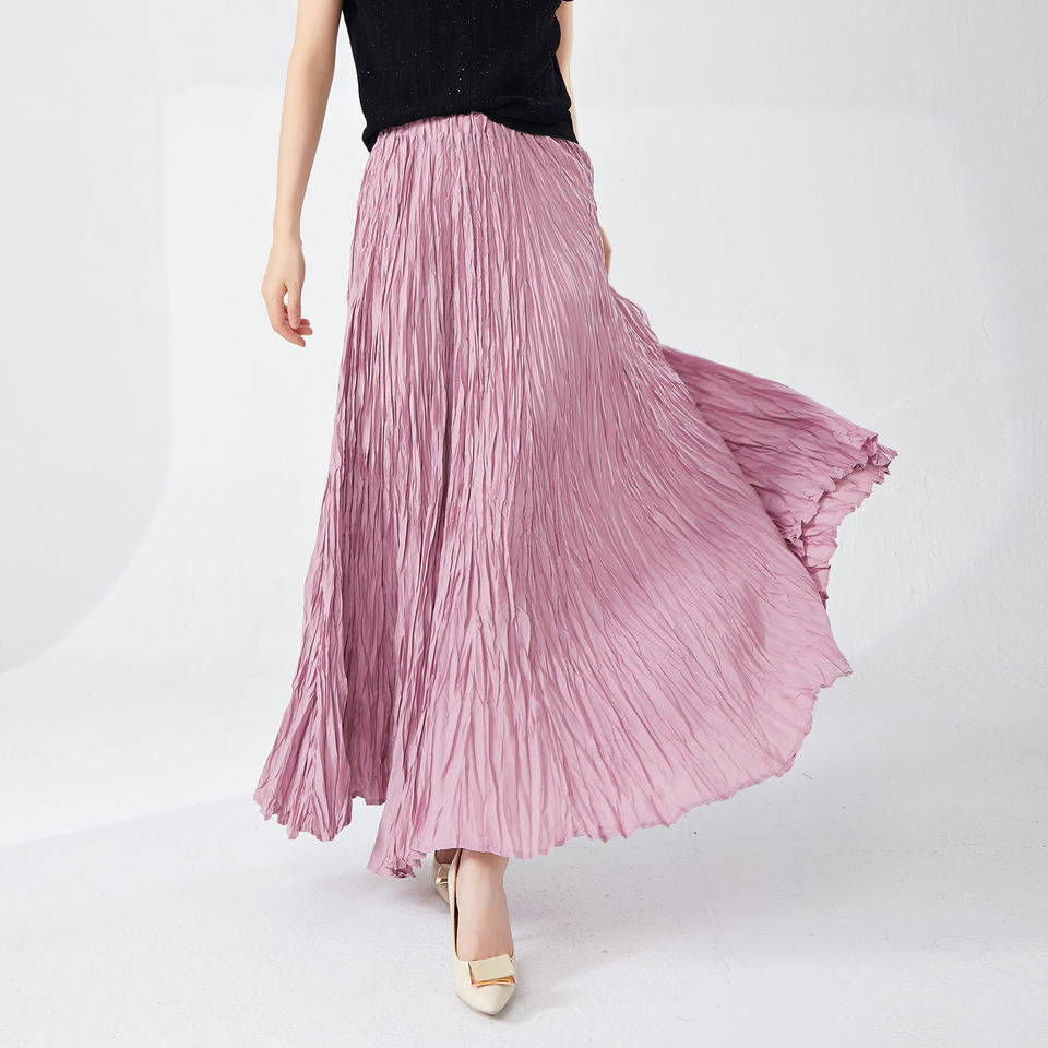 กระโปรงพลีททรงเอ ดีไซน์คุณภาพสูง เอวสูง ผ้าพลิ้ว ช่วยพรางหุ่น ทรงบานใหญ่ แฟชั่นสำหรับผู้หญิง
