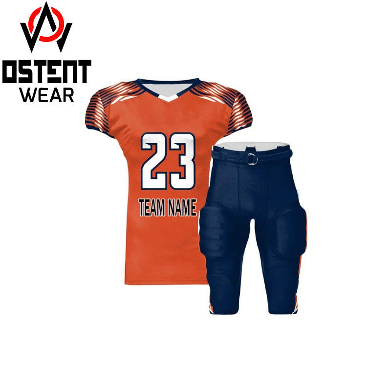 ชุดยูนิฟอร์มอเมริกันฟุตบอลคุณภาพสูง ไซส์ใหญ่ แห้งเร็ว ระบายอากาศได้ดี ป้องกันแบคทีเรีย สำหรับผู้ใหญ่ ขายส่ง รับผลิตตามสั่ง ชุดกีฬา