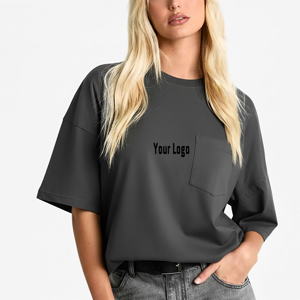 เสื้อยืดคอกลมสีพื้นคุณภาพสูงสำหรับผู้หญิงไซส์ใหญ่ สวมใส่สบายในฤดูร้อน พร้อมปักโลโก้ตามสั่ง สไตล์ลำลองฮิปฮอป