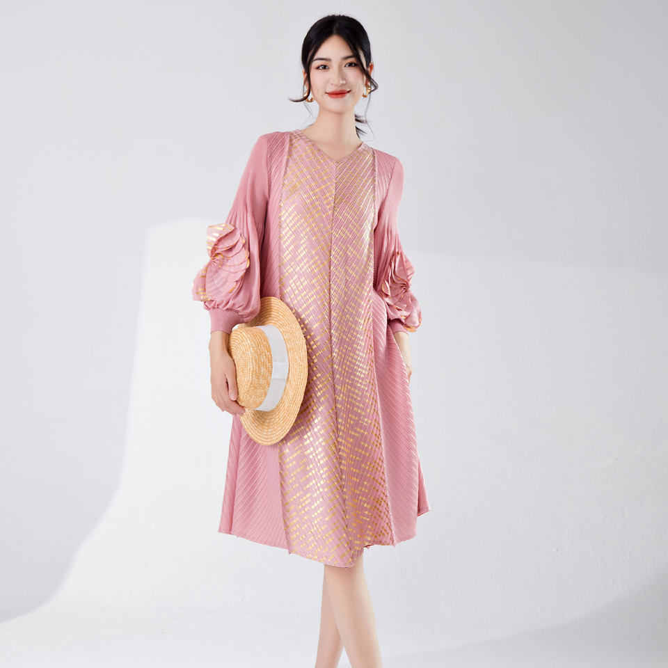 เดรสทรงเอพลีทผ้าทอเนื้อดี คุณภาพสูง สำหรับผู้หญิงไซส์ใหญ่ ล้างทำความสะอาดได้ ดีไซน์ทันสมัยแบบใหม่ปี 2025 ทรงหลวม จับจีบ สำหรับฤดูใบไม้ร่วง