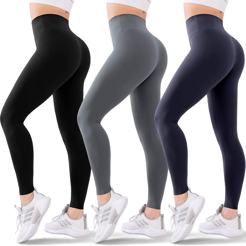 เลกกิ้งออกกำลังกายโยคะของผู้หญิงเลกกิ้งออกกำลังกายเอวสูงสีพื้นใส่สบายยืดหยุ่นได้ไซส์ใหญ่พิเศษ