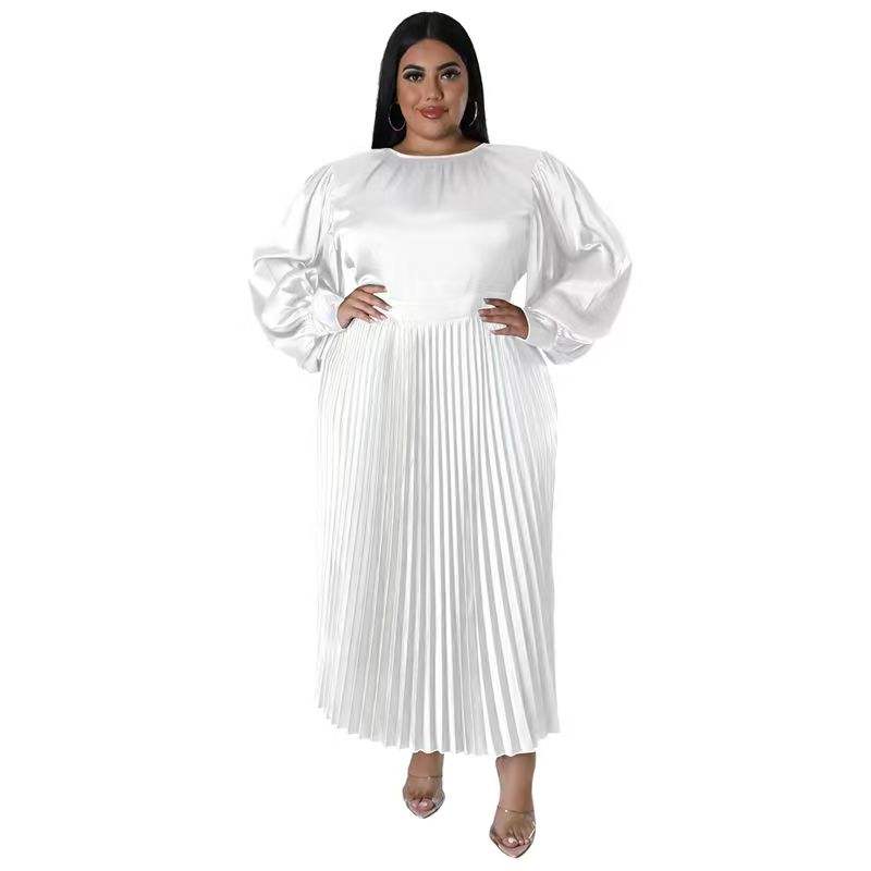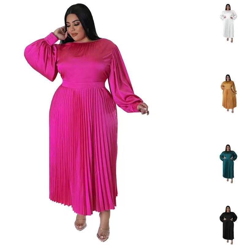 เดรสลำลองผู้หญิงไซส์ใหญ่คุณภาพสูง ผ้าโพลีเอสเตอร์ธรรมชาติสีพื้น ความยาวระดับเข่า ดีไซน์หรูหรา