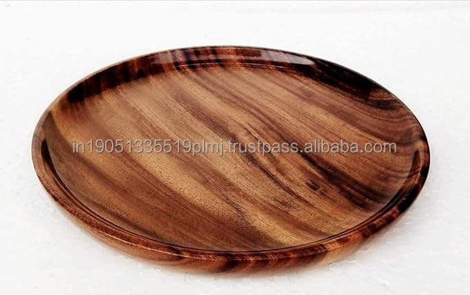 จานรองอาหารไม้มะม่วงอะคาเซียขัดเงาคุณภาพสูง เป็นมิตรกับสิ่งแวดล้อม ภาชนะไม้เนื้อแข็งสไตล์อเมริกัน สำหรับใช้ในบ้านและงานเลี้ยง
