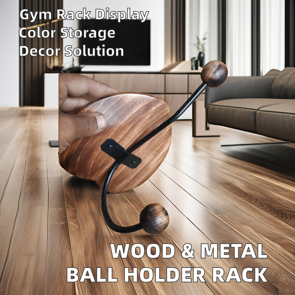 ชั้นวางติดผนังสำหรับเก็บและโชว์อุปกรณ์กีฬา ทำจากไม้และโลหะ คุณภาพสูง ขัดเงา พร้อมลวดลายสลัก สำหรับตกแต่งและจัดเก็บลูกบาสเก็ตบอล