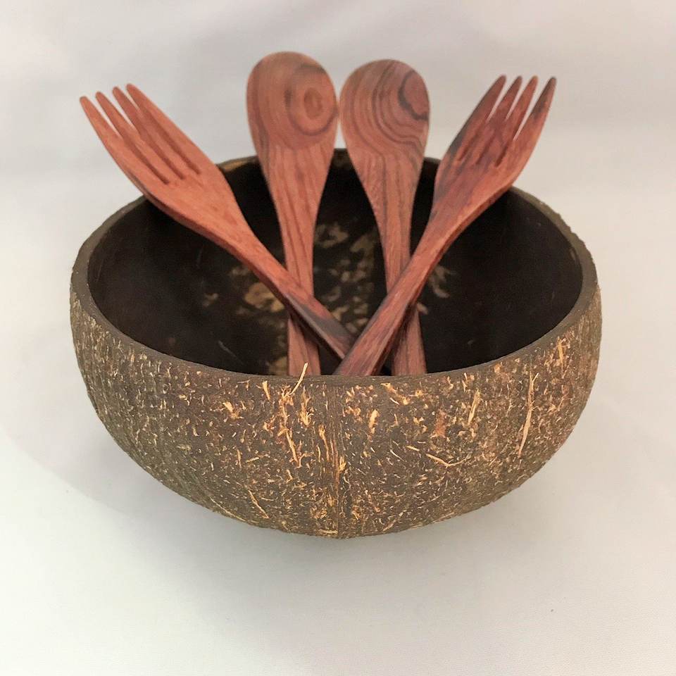 ชุดชามกะลามะพร้าวขัดเงาเป็นมิตรกับสิ่งแวดล้อมชุดชามสลัดหวายออร์แกนิคสำหรับตกแต่งบ้านแนววินเทจขนาดเล็กทนทาน