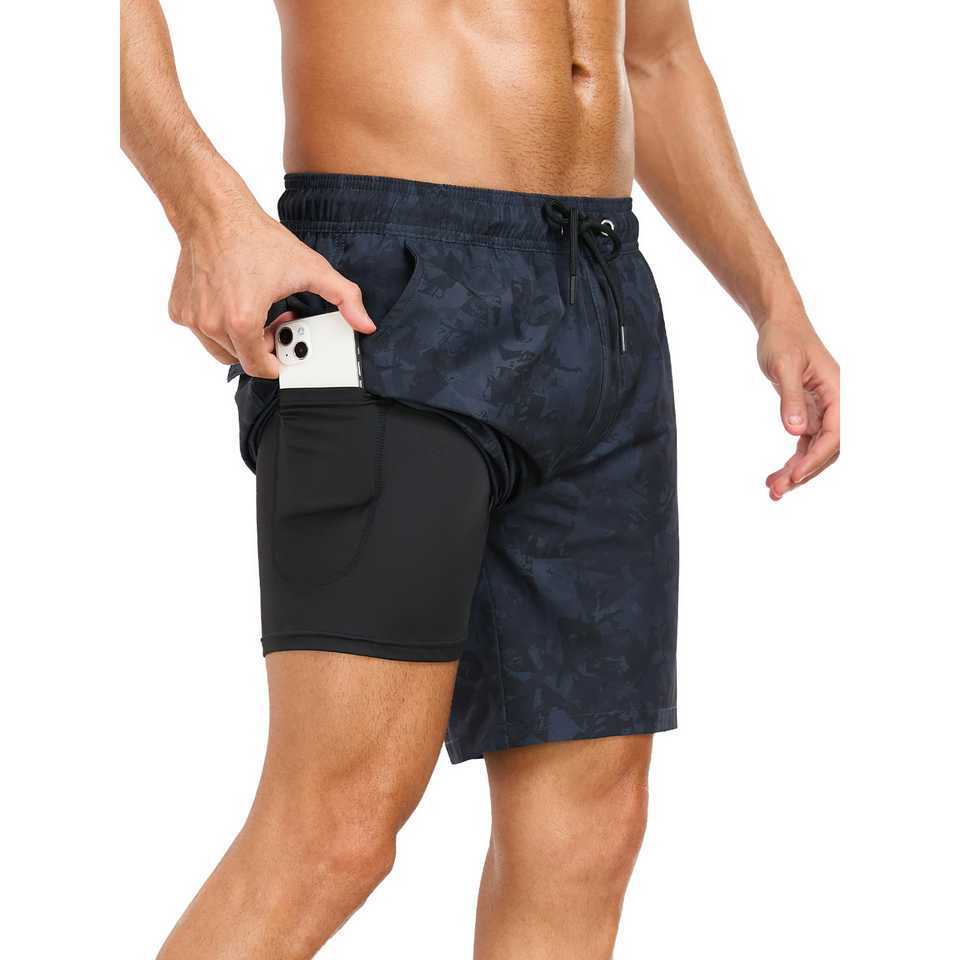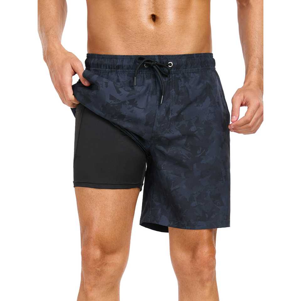 กางเกงขาสั้นโพลีเอสเตอร์พิมพ์ลายพรางสำหรับผู้ชายกางเกงขาสั้นเล่นเซิร์ฟชายหาดสำหรับวิ่งบนถนนสูงใส่สบายในฤดูร้อน