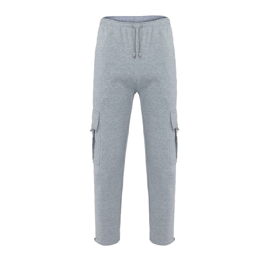 กางเกงวอร์มผู้ชายผ้าโพลีเอสเตอร์/คอตตอนคุณภาพสูง สวมใส่สบาย หนานุ่ม อุ่นสบาย สไตล์ลำลอง ทรงตรงกลาง ขาตรง ผ้าฟลีซ