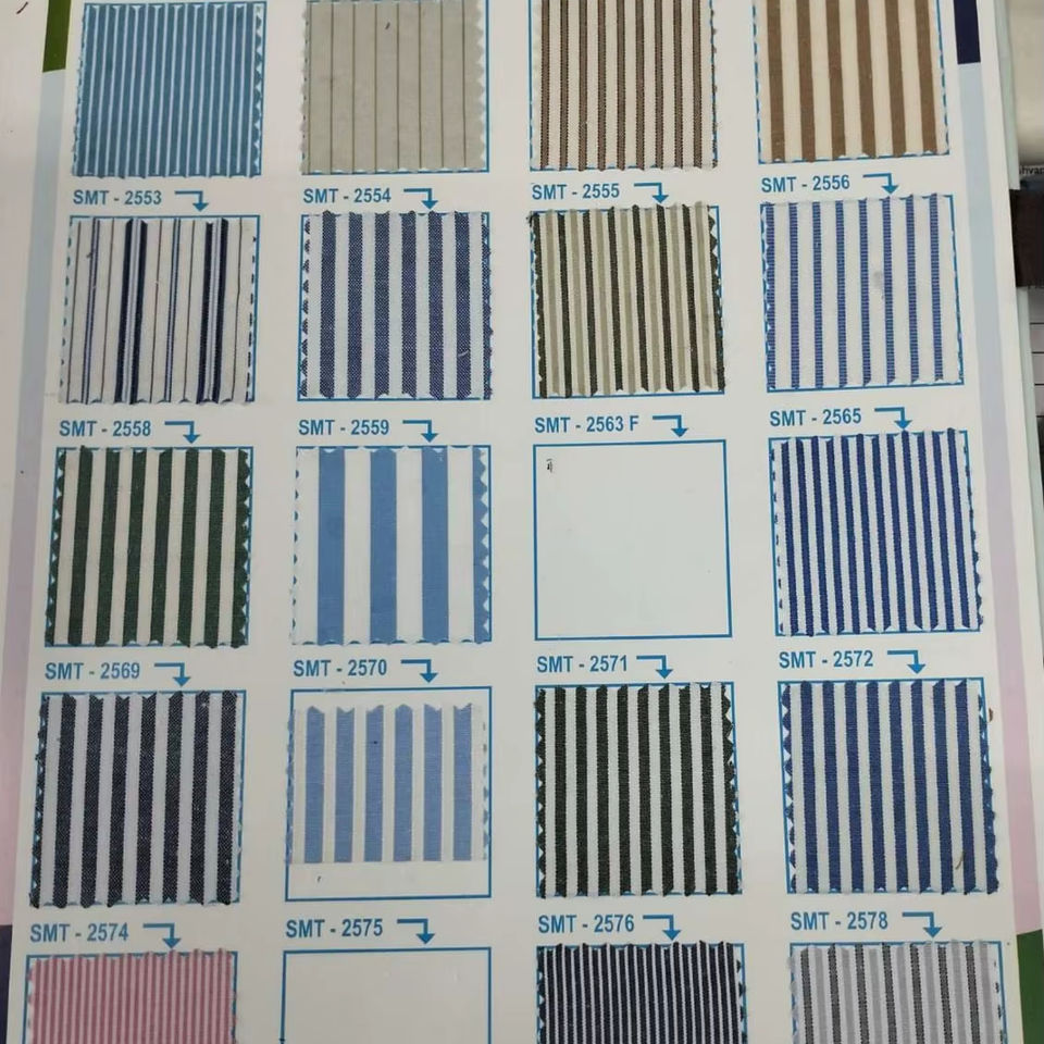 ผ้าลายทางคุณภาพสูง ผลิตจากโพลีเอสเตอร์ผสมฝ้าย เนื้อผ้านุ่ม เหมาะสำหรับทำชุดนักเรียน วัสดุต้นแบบสำหรับงานสิ่งทอ ทนทาน ใช้ทำชุดได้หลากหลาย ราคาขายส่ง