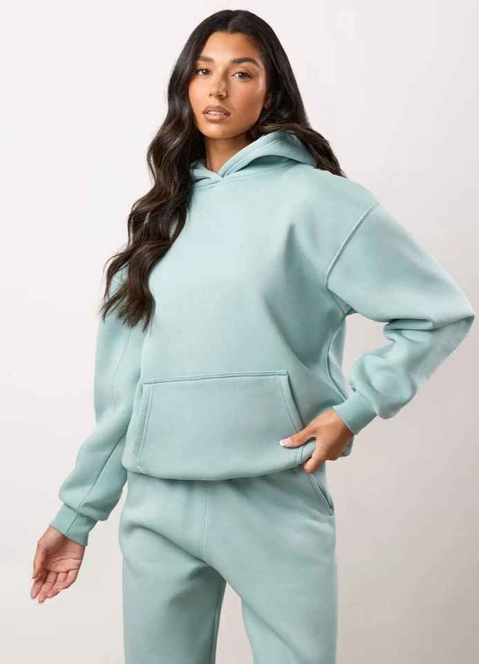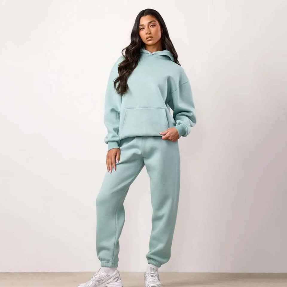 ชุดวอร์มสำหรับหญิงตั้งครรภ์ ผ้าฟลีซเทคโนโลยีโพลีเอสเตอร์/คอตตอนคุณภาพสูง สำหรับฤดูหนาว แบบเรียบง่าย ทรงโอเวอร์ไซส์ สองชิ้น