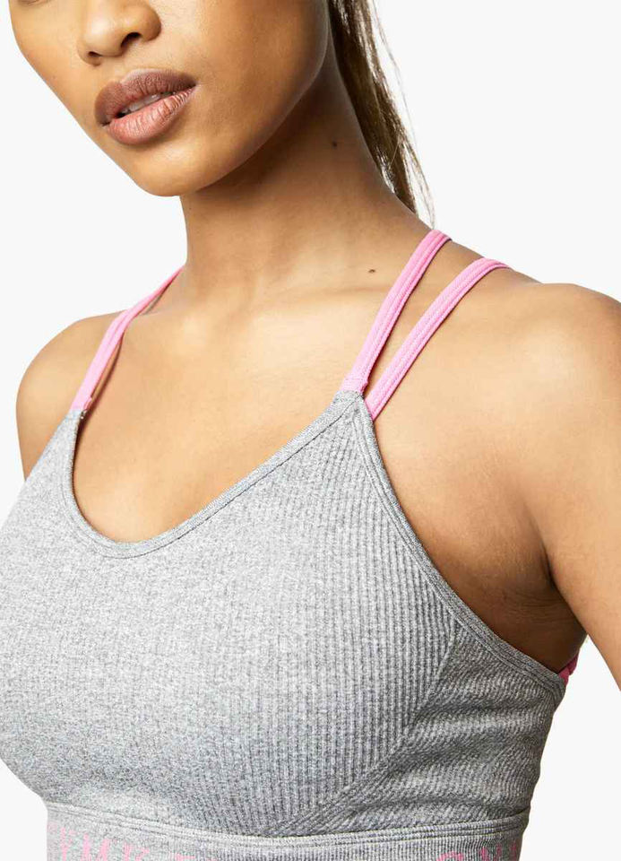 สปอร์ตบราผ้าโพลีเอสเตอร์ออกแบบได้ตามต้องการสวมใส่สบายสำหรับฝึกซ้อมพร้อมพิมพ์โลโก้