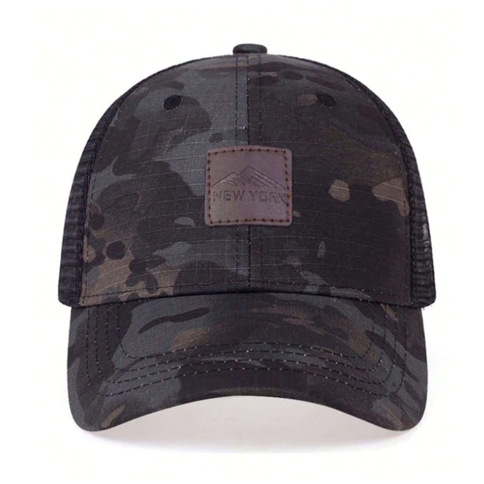 High Quality Polyester Custom Mesh Trucker Cap With Leather Patch Curved Brim Baseball Cap Structured Mesh Back Spot Cap Gorras
