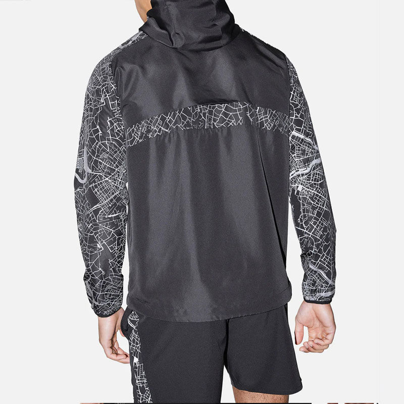 ชุดเสื้อแจ็กเก็ตผ้าโพลีเอสเตอร์ทอสำหรับวิ่งน้ำหนักเบาสำหรับผู้ชายเสื้อกันลมกันน้ำสะท้อนแสง