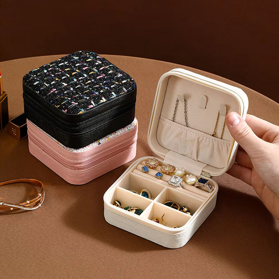 กระเป๋าเก็บเครื่องประดับแบบมีซิปแบบพกพาต่างหูสร้อยคอของผู้หญิงที่เก็บแบบทอ