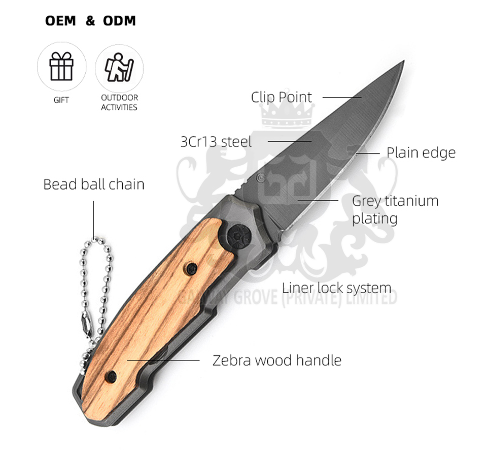 มีดพับพวงกุญแจเหล็กเคลือบผงคุณภาพสูง ลายดามัสกัส ดีไซน์ปลายใบมีดแบบดรอปพอยต์ ทำจากไม้ งาน DIY อเนกประสงค์ รับผลิตแบบ OEM