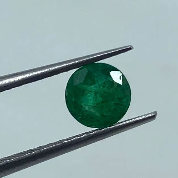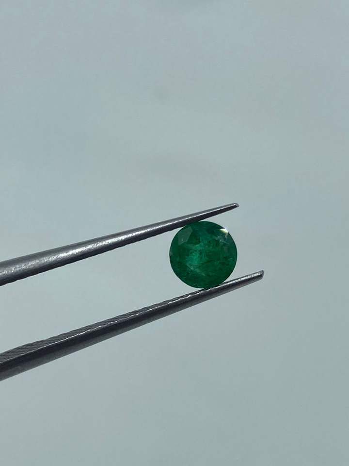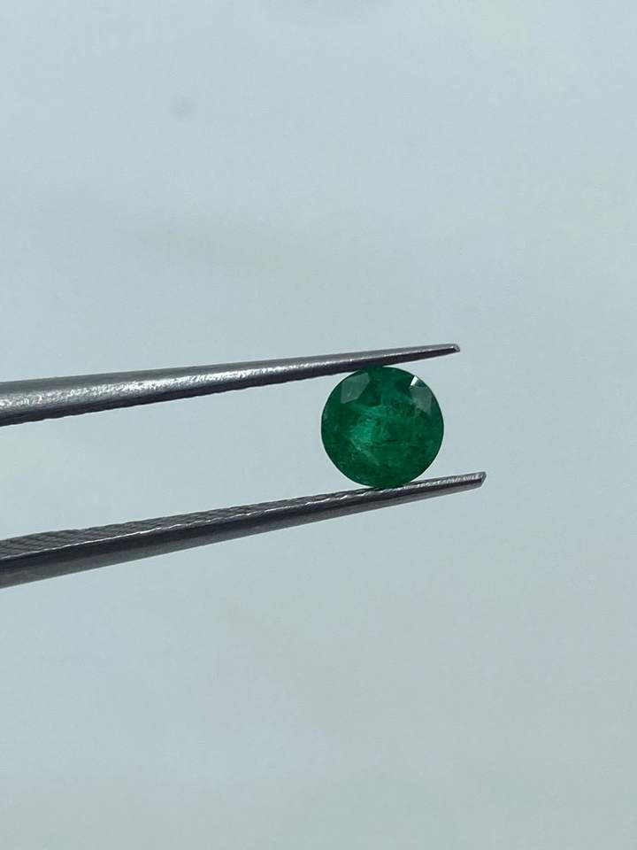 พลอยมรกตสีเขียวคุณภาพสูง ขนาด 4.80 มม. น้ำหนัก 0.40 กะรัต แบบติดตั้งด้วยกรงเล็บบนโซ่เชือก สำหรับทำเครื่องประดับ