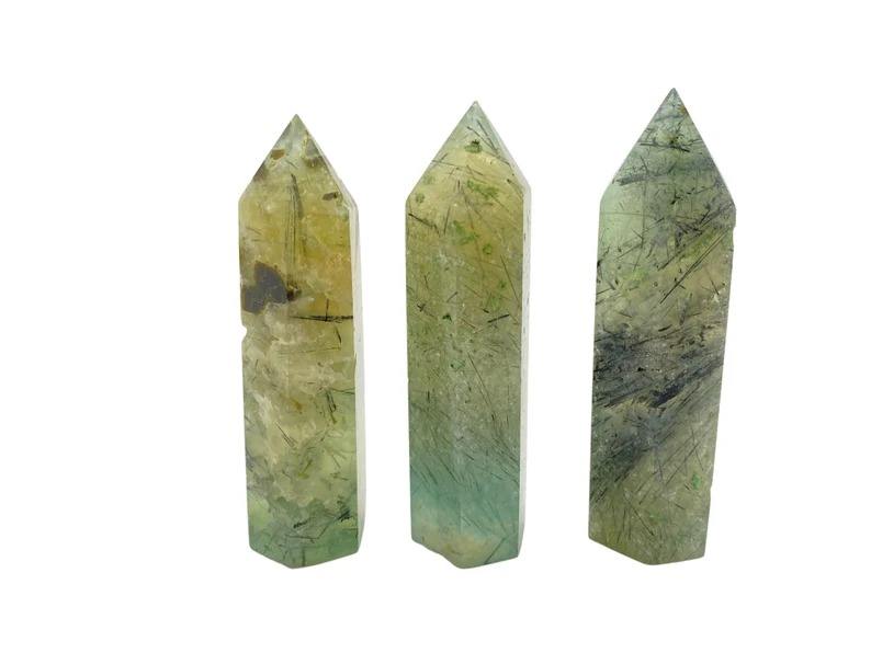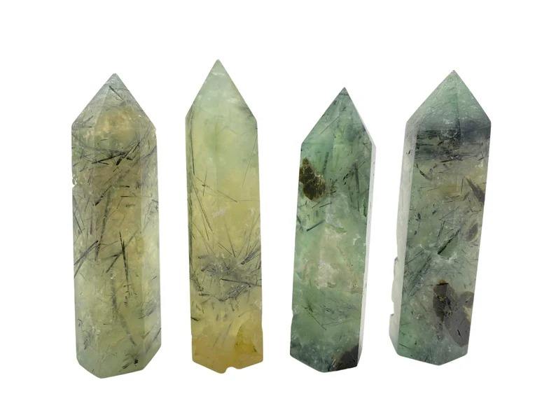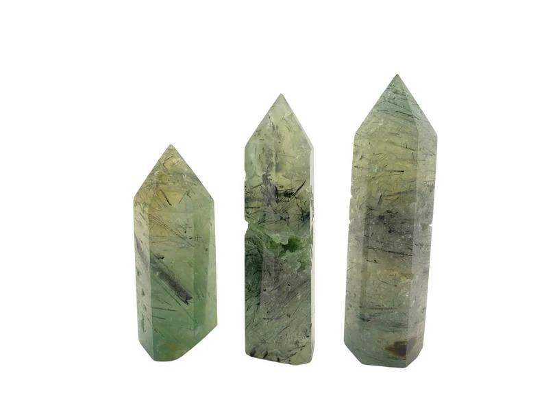 เสาโอเบลิสก์หอคริสตัลพรีไนท์จากธรรมชาติสำหรับตกแต่งบ้านฮวงจุ้ยหินบำบัดมาสค็อตหินขัดเงา