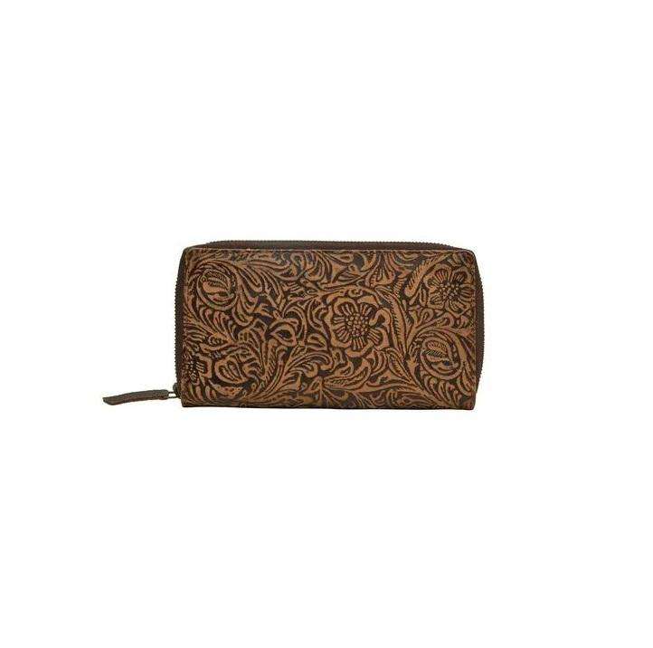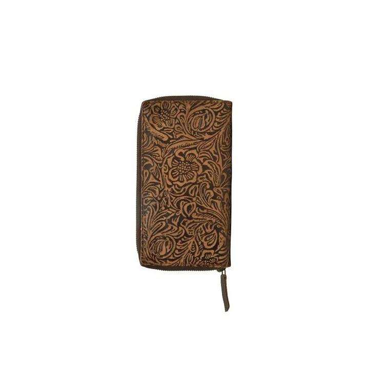 กระเป๋าคลัทช์หนังแท้คุณภาพสูงสำหรับผู้หญิง ลายดอกทานตะวันแกะสลักด้วยมือ ซิปแบบวินเทจ ผลิตโดยผู้ผลิตชาวอินเดีย