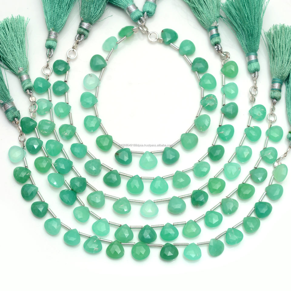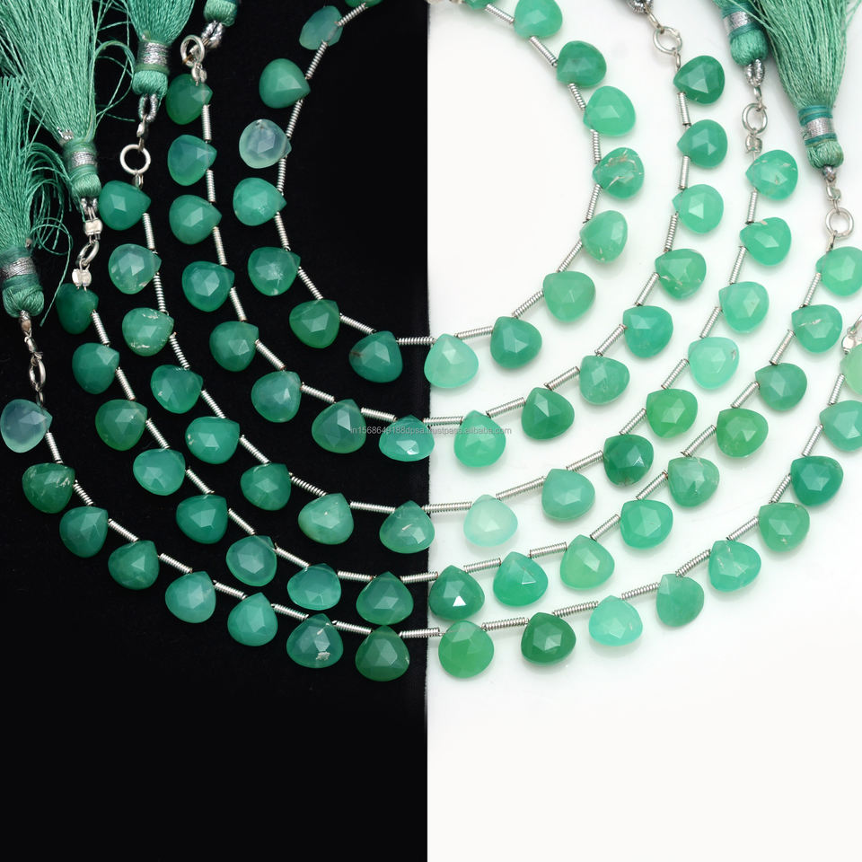 ลูกปัดคริสโซเพรสสีเขียวมะกอกธรรมชาติคุณภาพสูงเป็นรูปหัวใจเหลี่ยมเพชรพลอยขนาด6นิ้ว8x8มม. การทำเครื่องประดับ