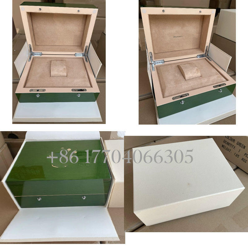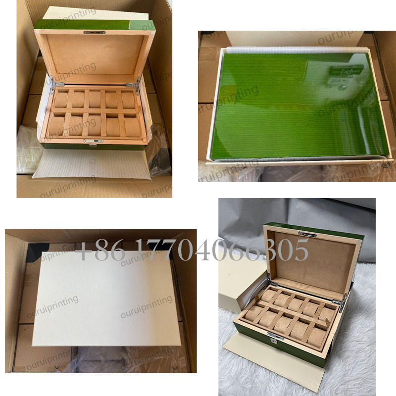 กล่องใส่นาฬิกาทรงสี่เหลี่ยมคุณภาพสูงพรีเมียม พร้อมซับในกำมะหยี่ หนังเทียมอย่างดี กล่องกระดาษสีเขียวอย่างดี