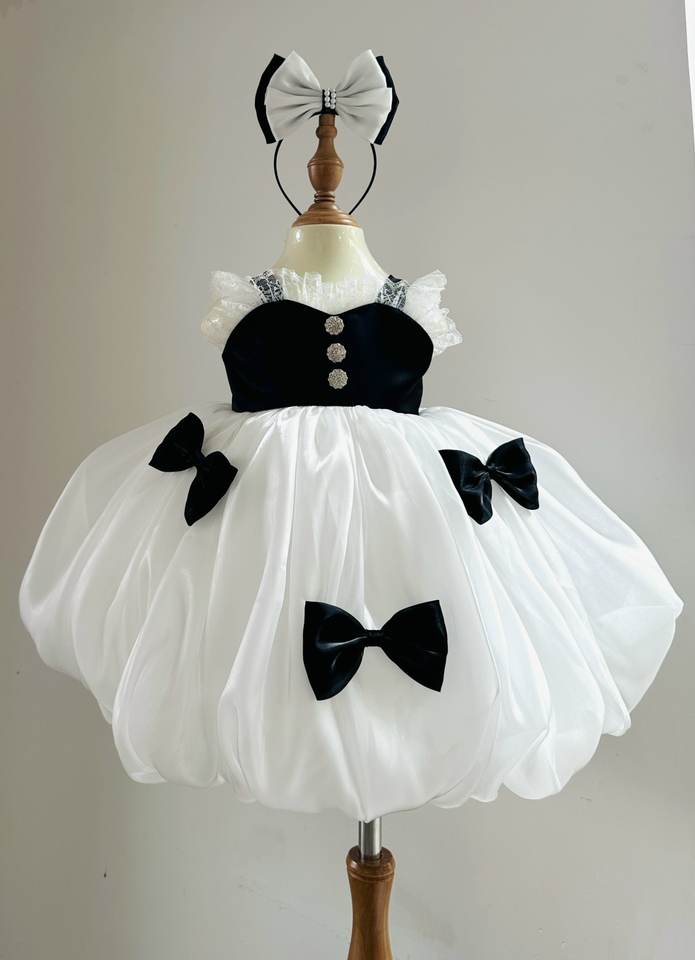 เดรสเจ้าหญิงสั้นทำจากผ้าซาตินมีโบว์รูปฟักทองเดรสปาร์ตี้แฟชั่น