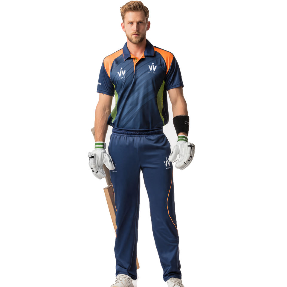 ชุดคริกเก็ตคุณภาพสูง เสื้อฝึกซ้อมพร้อมกางเกงคริกเก็ตเอวผูกเชือก ชุดทีมพร้อมโลโก้และชื่อทีม