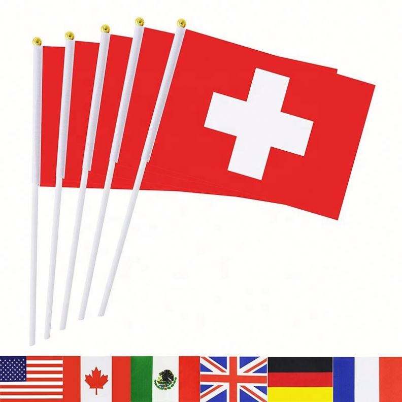 ผ้าโพลีเอสเตอร์พิมพ์ลายคุณภาพสูง ธงมือถือขนาดเล็ก 30x45 ซม. สำหรับแคมเปญสวิตเซอร์แลนด์ แบบกำหนดเองได้