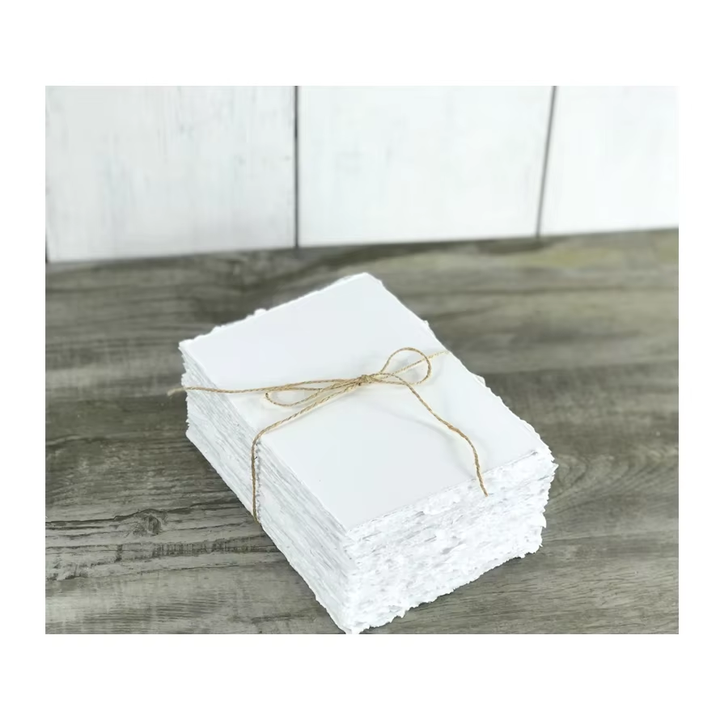 กระดาษพิมพ์คุณภาพสูง ปั๊มโลโก้ด้วยความร้อน กระดาษสีน้ำ ขนาด 5 x 7 นิ้ว หนา 300 แกรม ขอบกระดาษแบบเด็คเคิล ทำจากฝ้ายบริสุทธิ์ ทำด้วยมือ