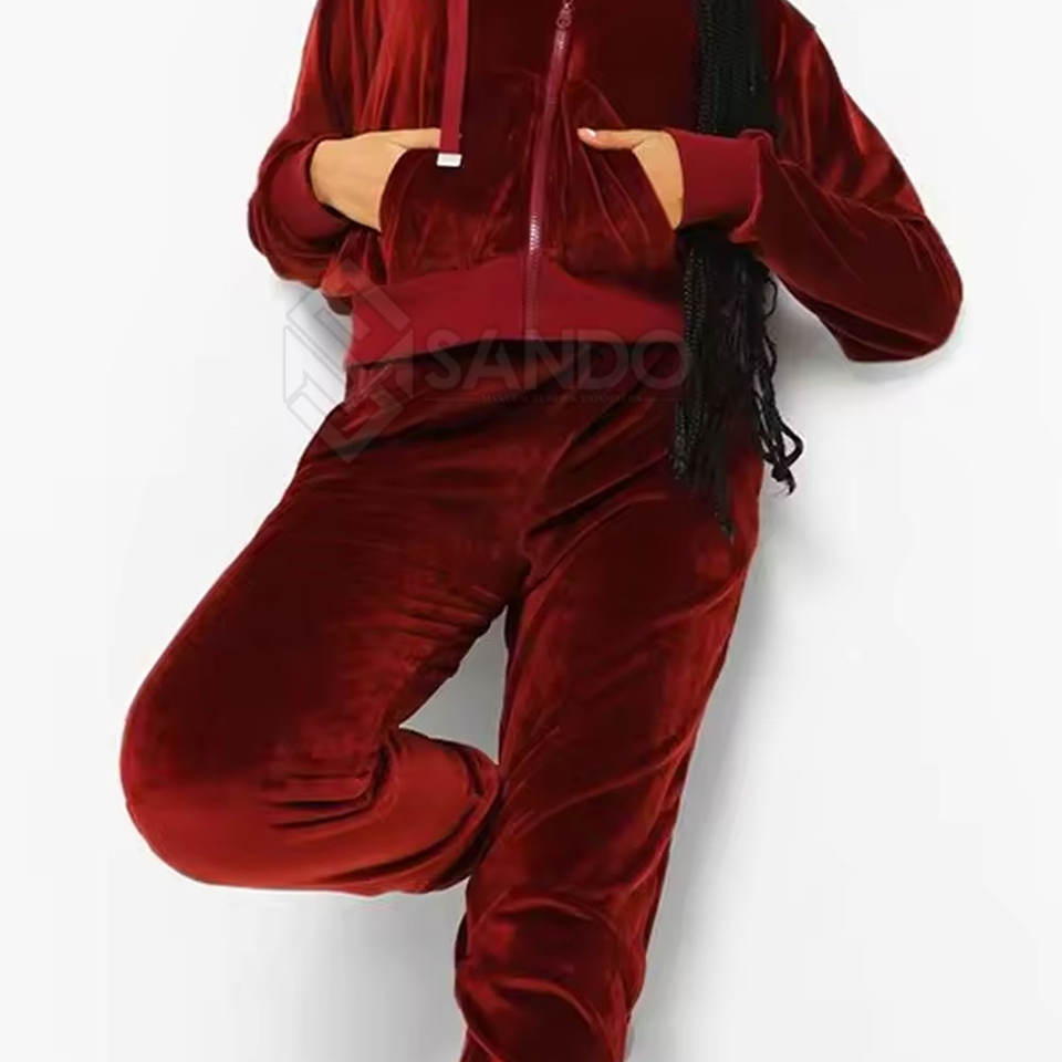 ชุดวอร์มกำมะหยี่คุณภาพสูงสำหรับผู้หญิง แบรนด์ส่วนตัว สำหรับฤดูหนาว พร้อมดีไซน์และโลโก้ที่ปรับแต่งได้ ระบายอากาศได้ดี