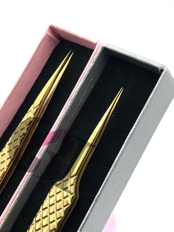 แหนบต่อขนตาคุณภาพสูง โปรโกลด์ พลาสมา สลิม ตรง ทำจากสแตนเลส ทนทาน ป้องกันไฟฟ้าสถิต ขนาด 10 มม. รับทำโลโก้ตามสั่ง