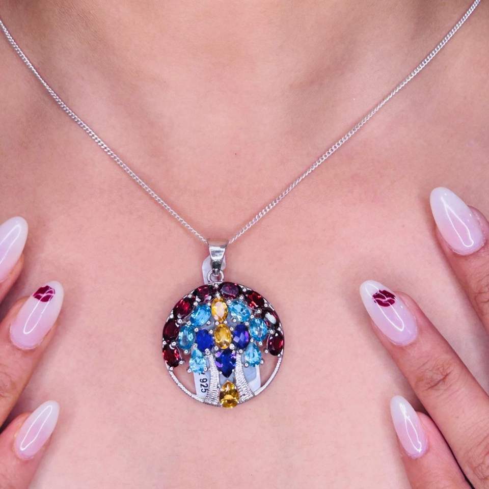 จี้รูปทรงไข่ประดับพลอยหลากหลายชนิด เงินแท้ 925 ลายต้นไม้แห่งชีวิต คุณภาพสูง หรูหรา ทันสมัย สวยงาม