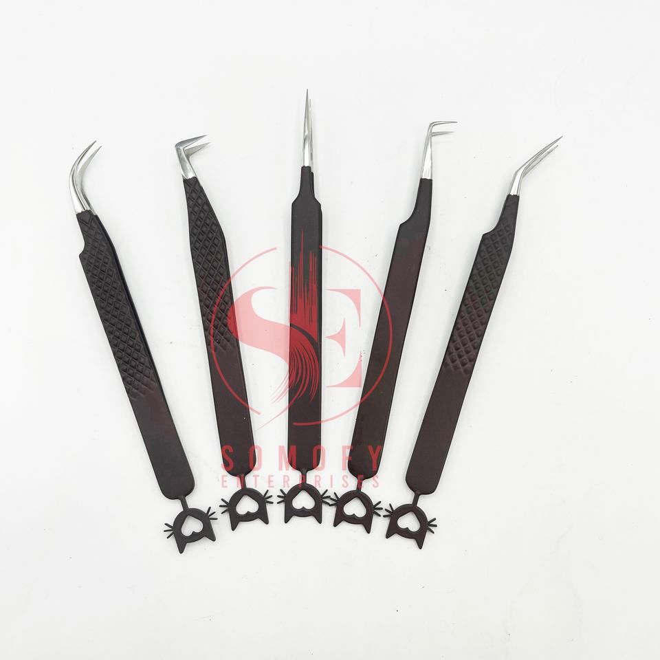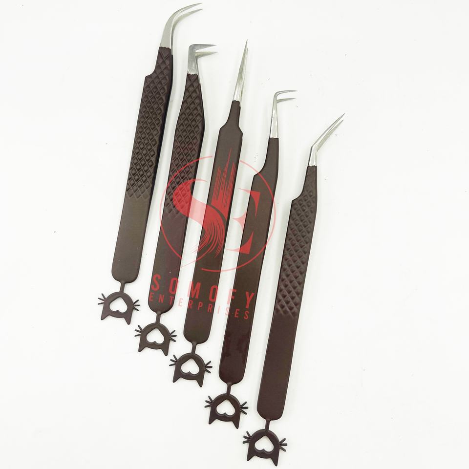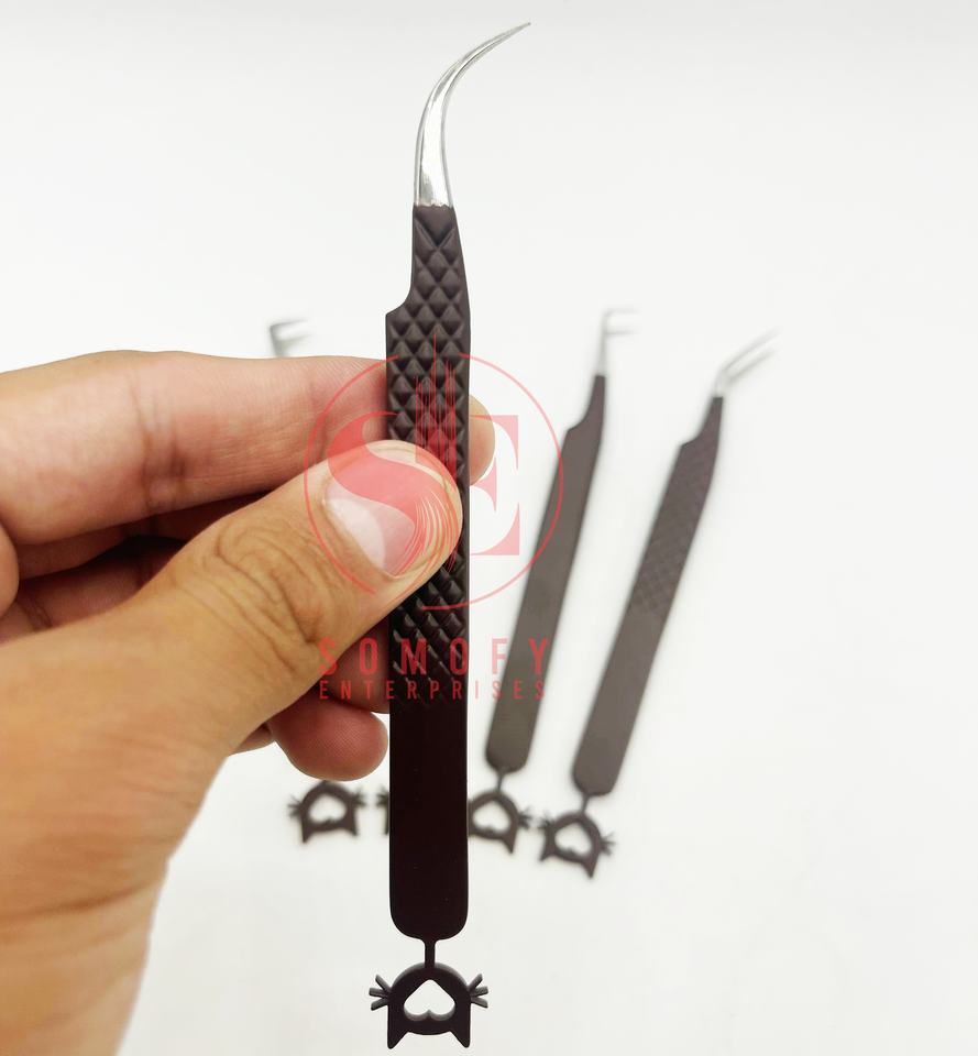 High Quality Professional Custom Sustainable Diamond Grip Fiber Volumes Brown Matt Japanese Stainless Steel Eyelash Tweezers